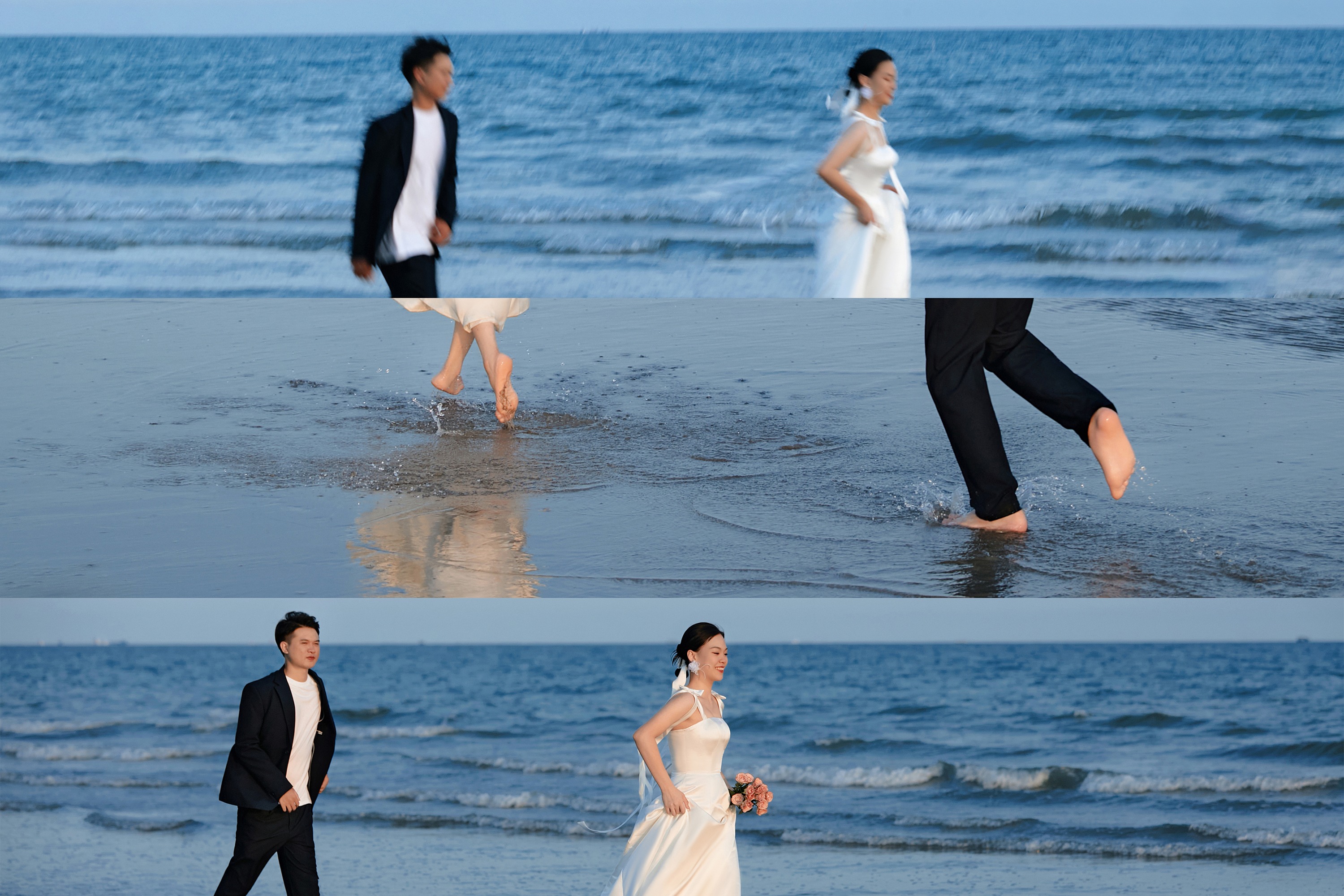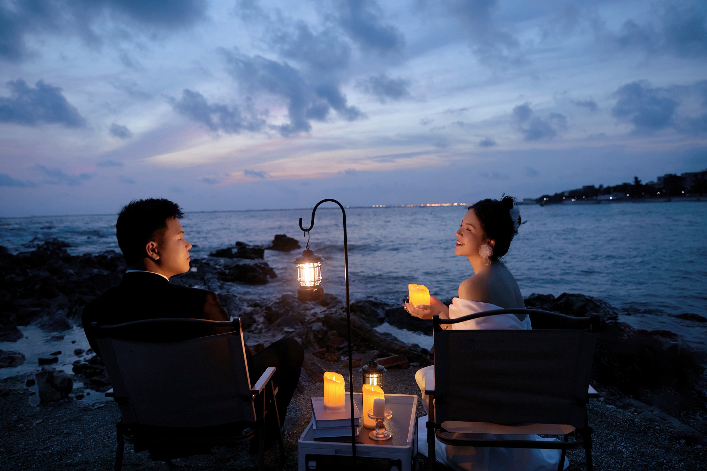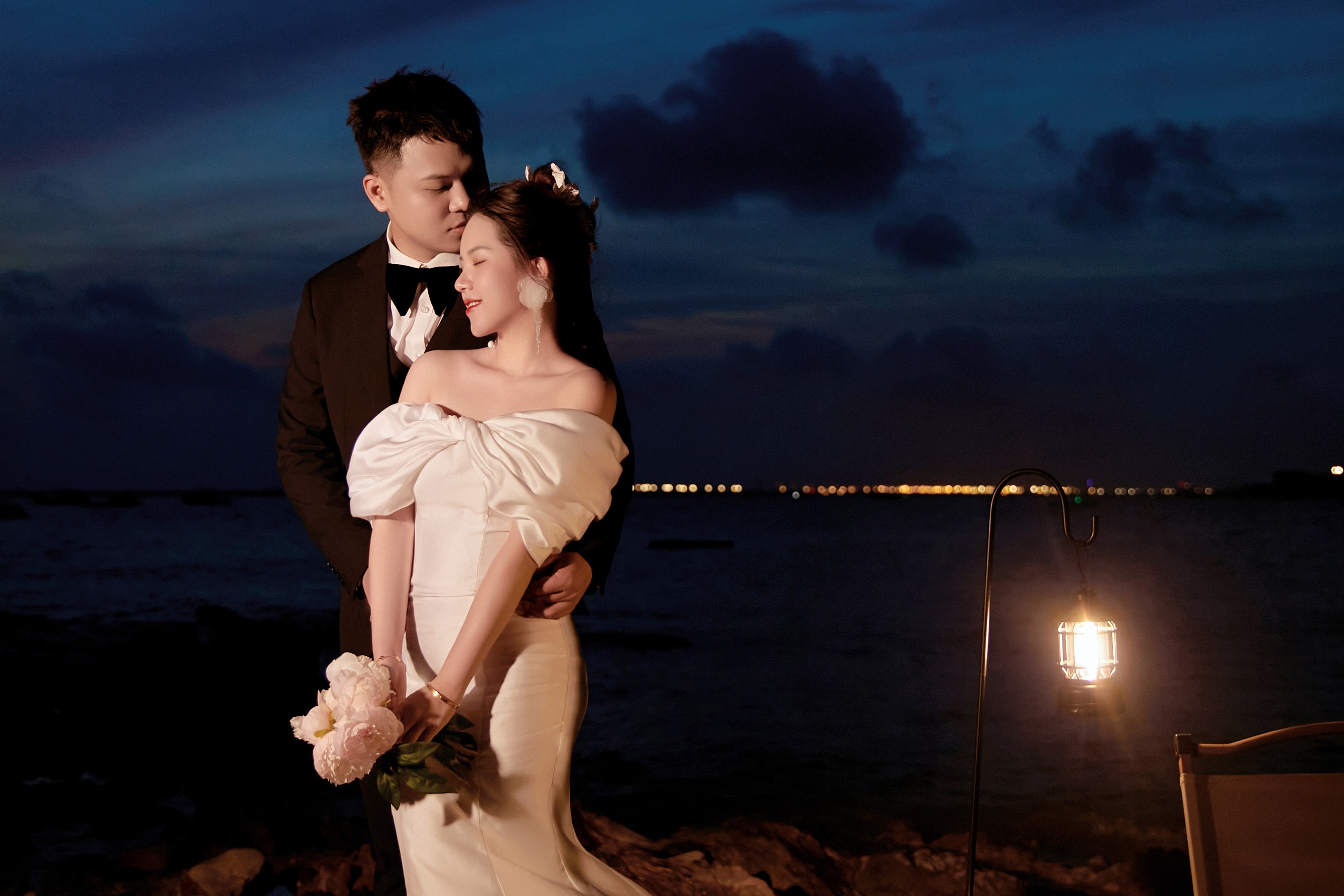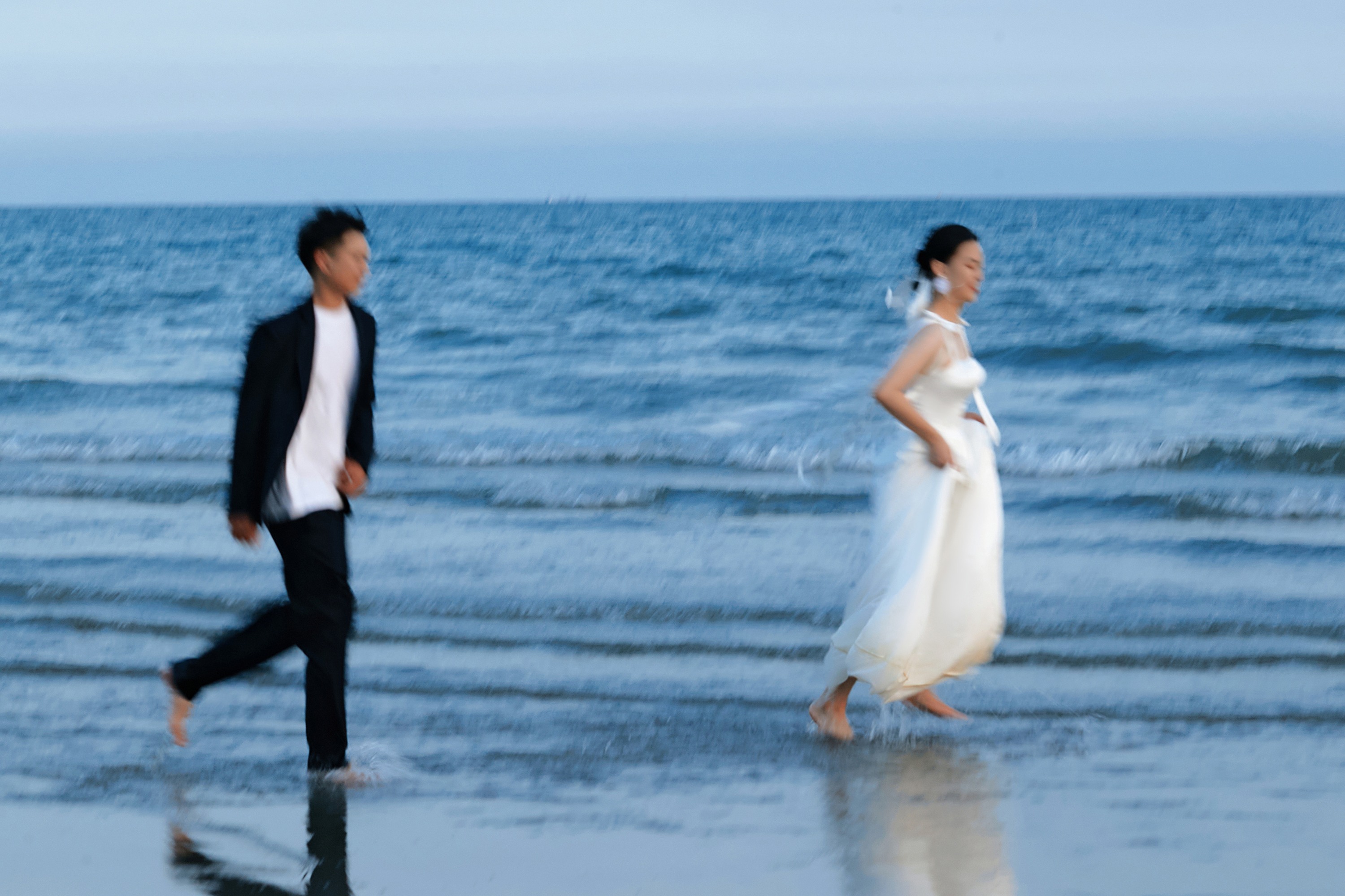 蓝底白纱婚纱照好温柔